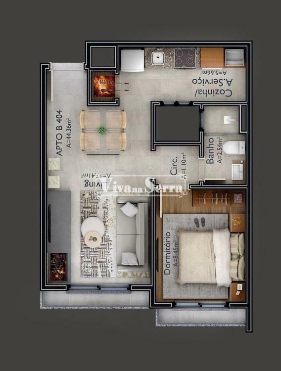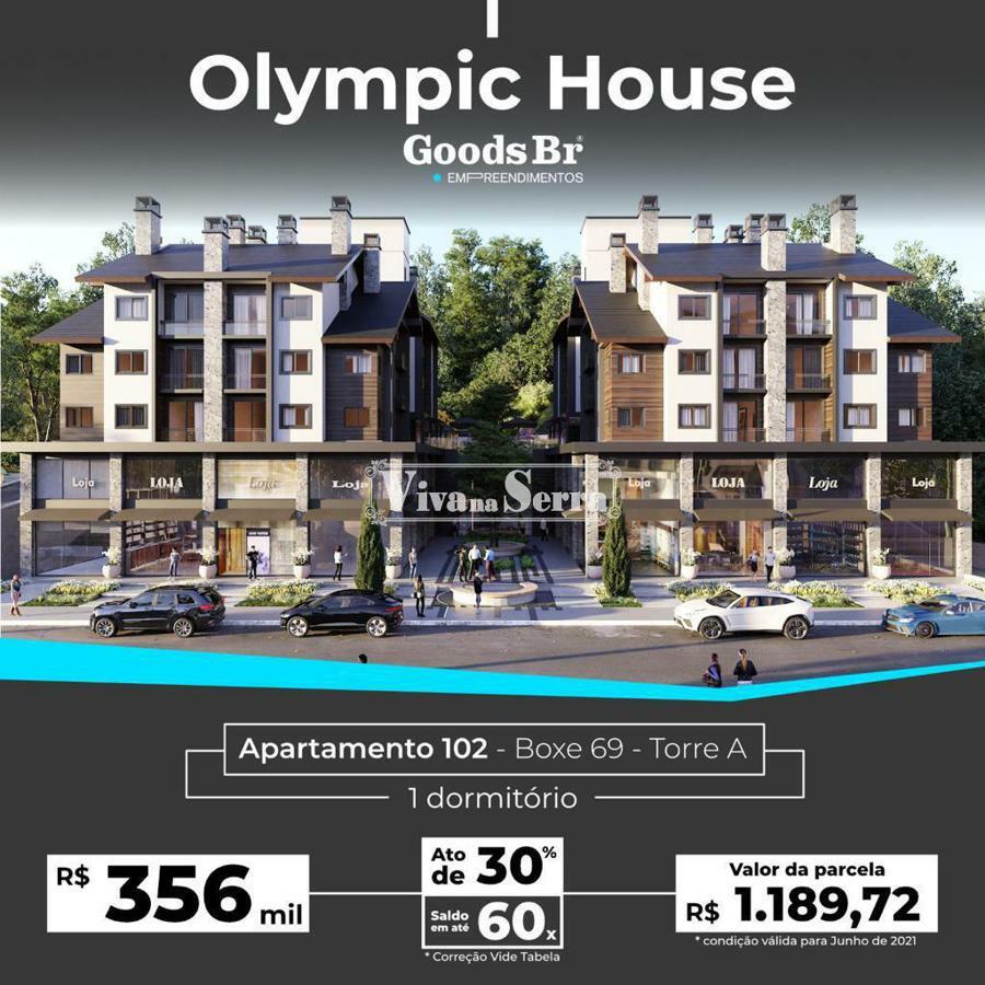 Imobiliária Viva na Serra vende apartamento de 01 dormitório no Res. Olympic House na Várzea Grande, Gramado; com várias características interessantes, como esquadrias em PVC com vidro duplo, living, esperas para lareira e split, além da opção de ser vendido mobiliado.