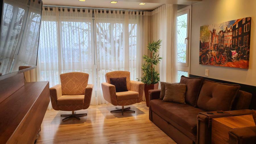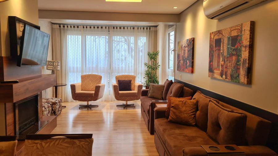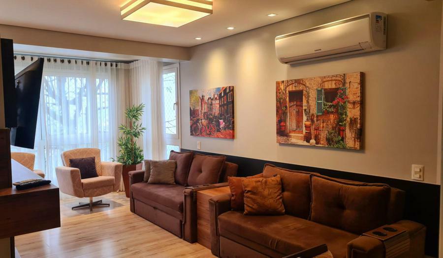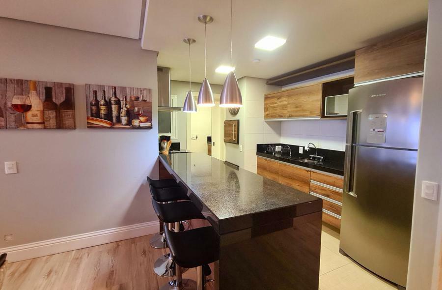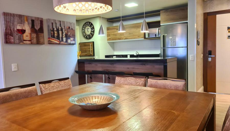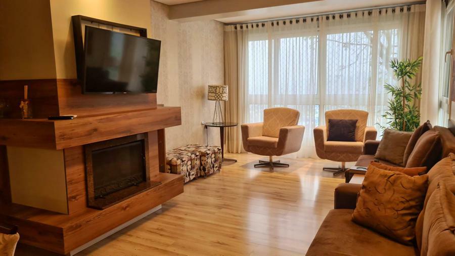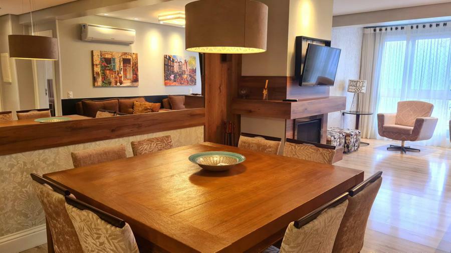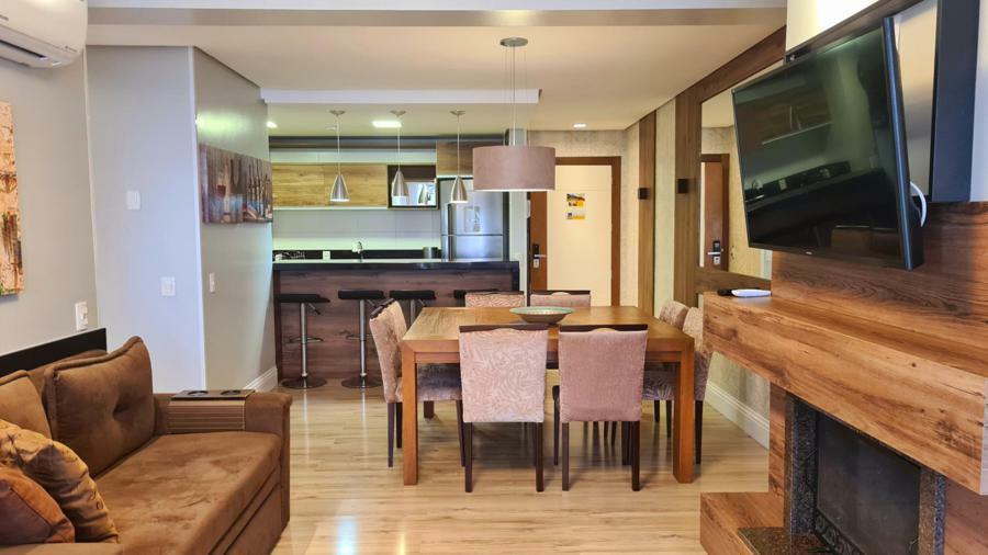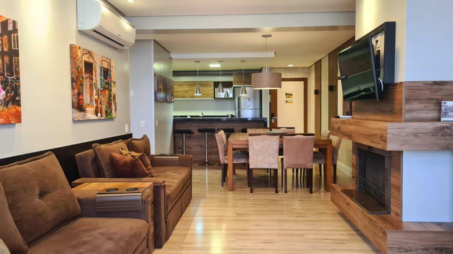 Apartamento oferece excelente infraestrutura, com 95m² de área privativa. Ele conta com 02 dormitórios, sendo uma suíte, o que proporciona mais conforto e privacidade. Cozinha equipada com copa, sala de jantar e sala de estar com lareira, criando um ambiente aconchegante e ideal para momentos de descanso, especialmente em dias mais frios.