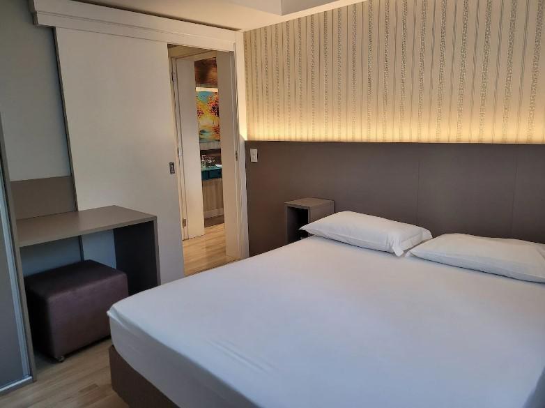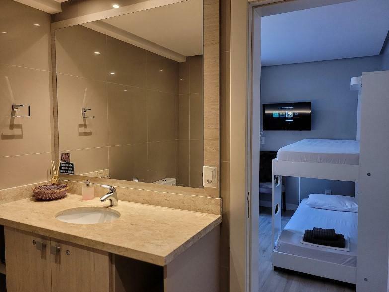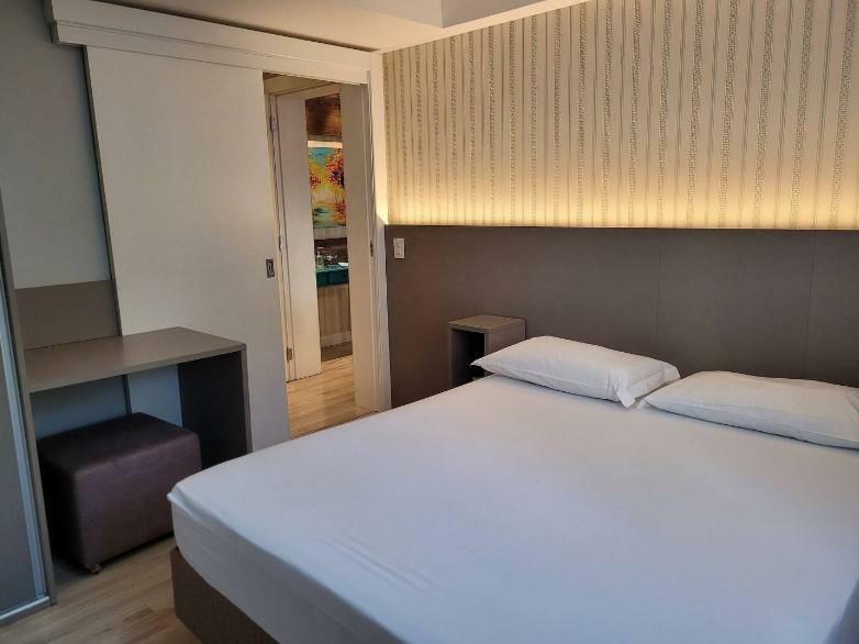 Apartamento espaçoso, com 84 m², totalmente decorado e mobiliado. Possui 2 dormitórios, ambos suítes, sendo que uma delas é reversível, o que proporciona flexibilidade no uso do espaço.