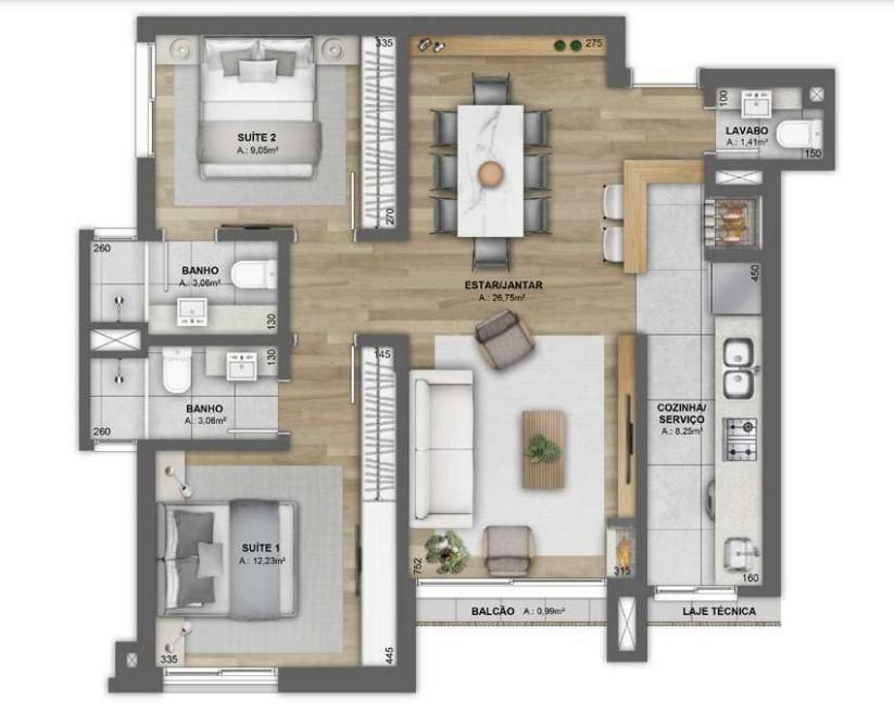 Acabamentos de alto padrão, esquadrias de PVC preto com vidros duplos, hall de entrada decorado, salão de festas decorado e equipado, fitness center decorado e equipado, playground, plantas customizáveis, port cochère com guarita. O empreendimento fica em localização privilegiada no Bairro Bavária em Gramado, na Rua Piratini, 55, esquina Rua Santana da Boa Vista. Terreno de esquina com ótima posição solar e áreas de uso comum que ficam em meio à natureza. Um verdadeiro refúgio em meio ao lazer, conveniência e privacidade.