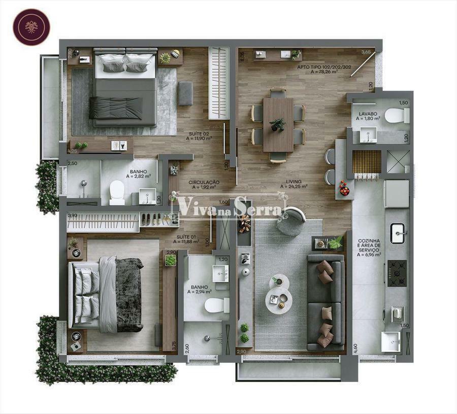 Apartamento à Venda pela Imobiliária Viva na Serra