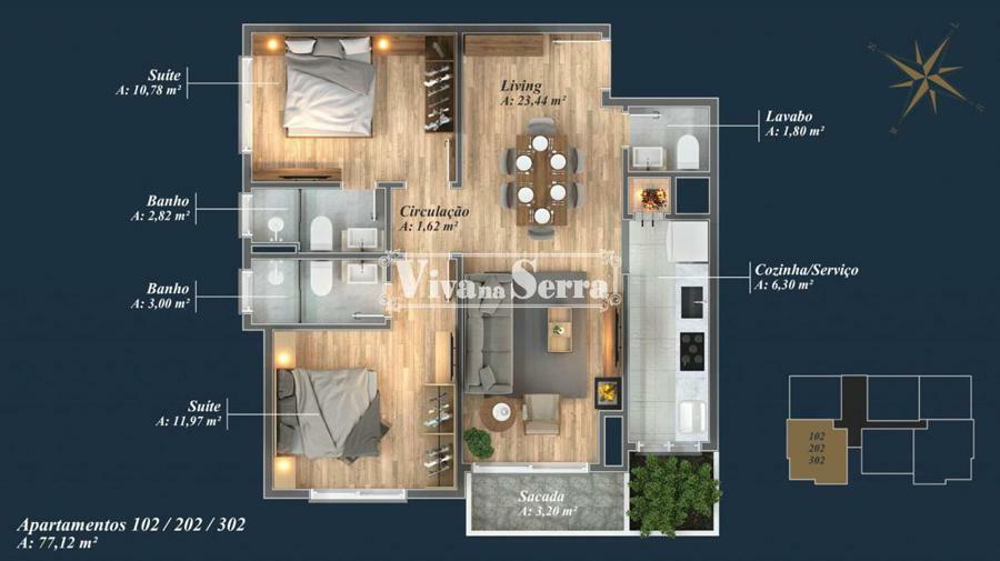 Imobiliária Viva na Serra vende apartamento em Gramado-RS com as seguintes características: