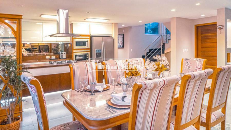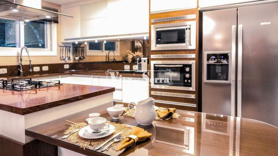 - Área Gourmet: Com mesa de madeira para 12 lugares, área de churrasqueira com pia e fogão à lenha, adega e todos os utensílios.