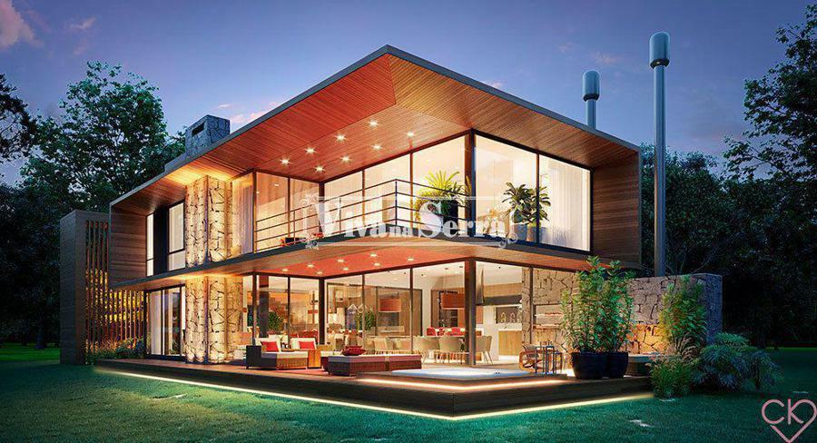 - Revestimento Externo: Madeiras ecológicas importadas