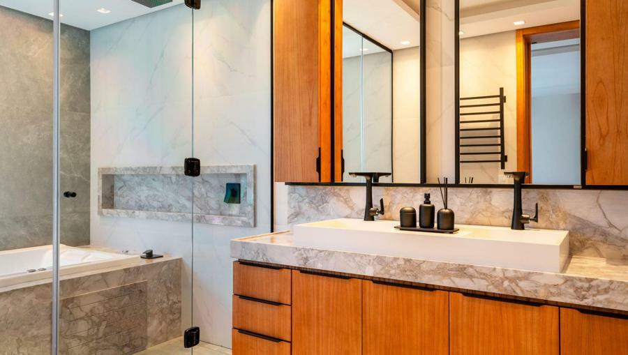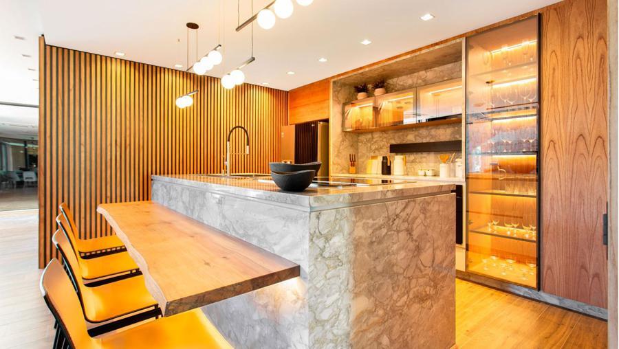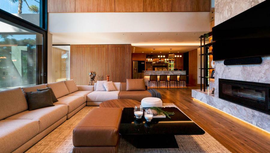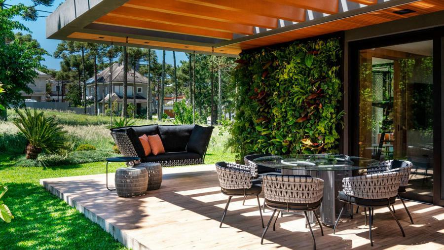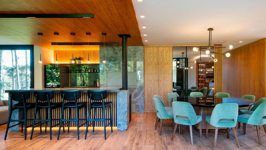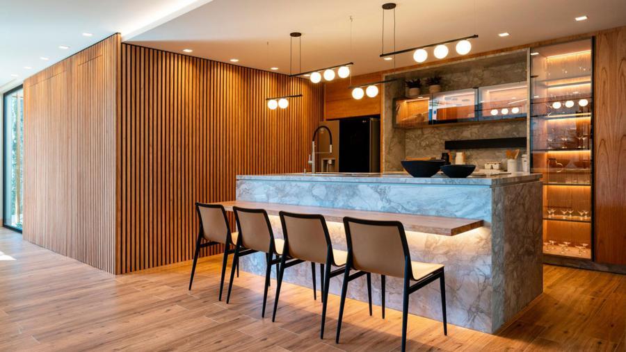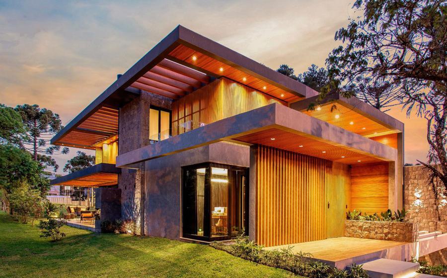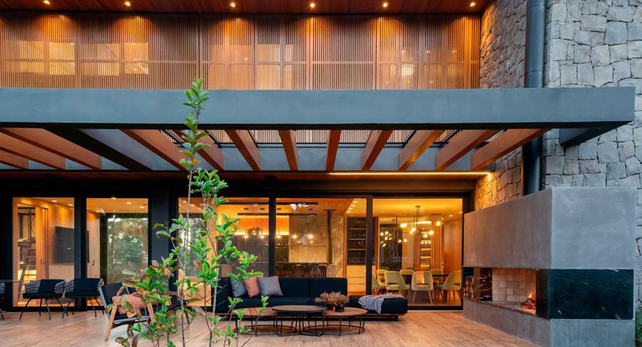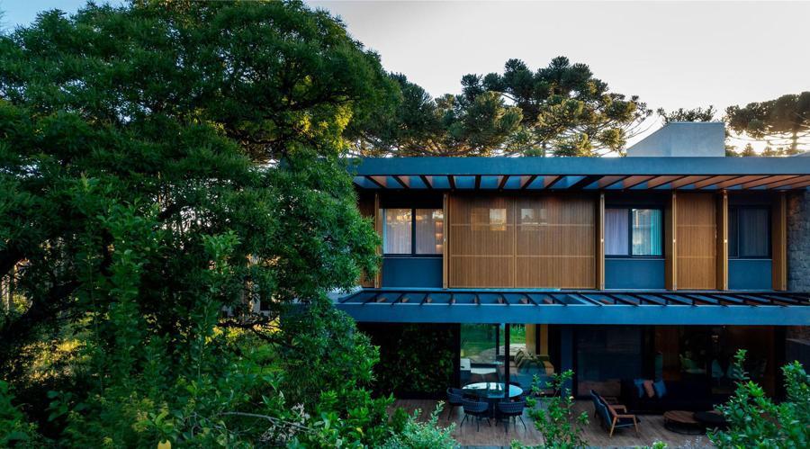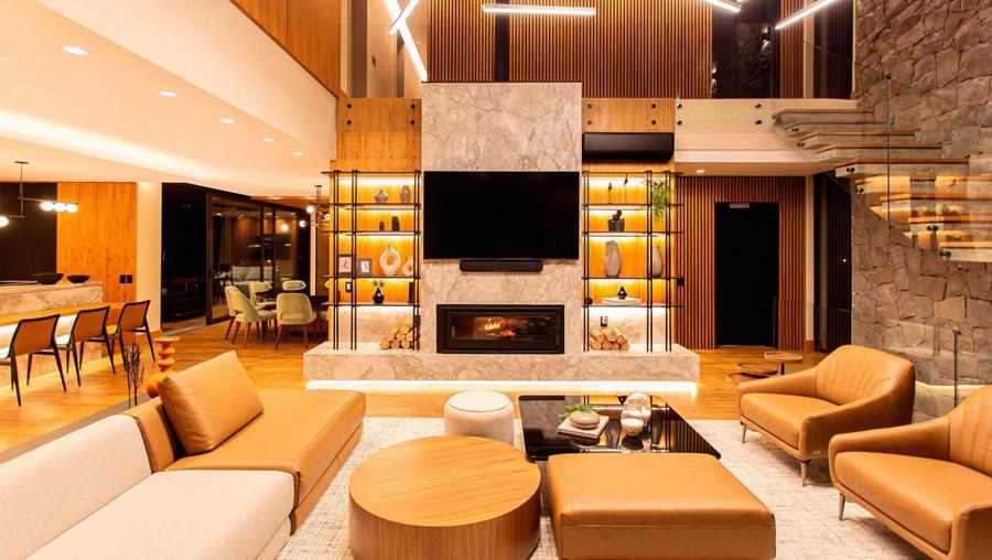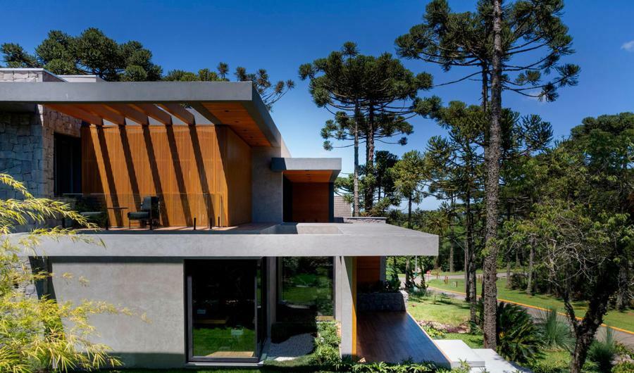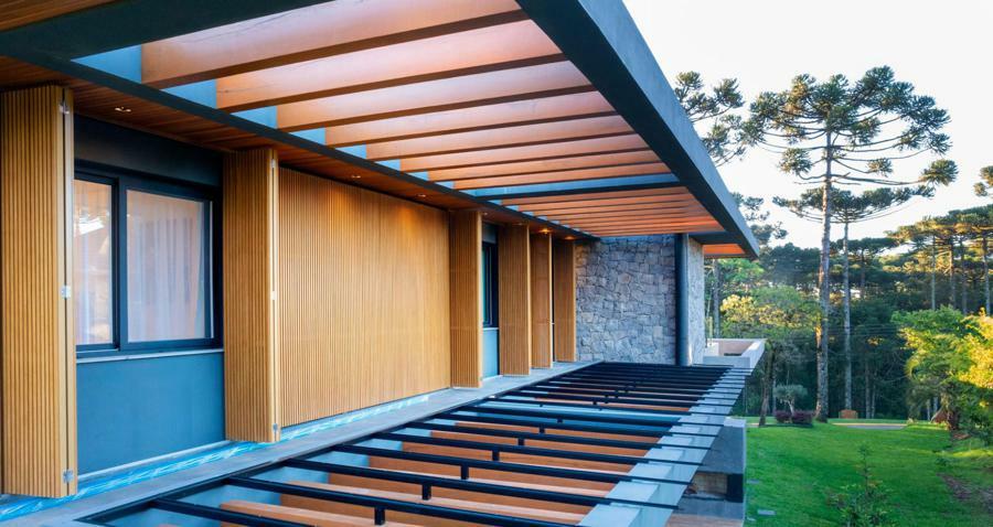 Elementos próprios da Serra Gaúcha, como a madeira e a pedra basalto, compõem com esta deslumbrante casa localizada em Gramado.