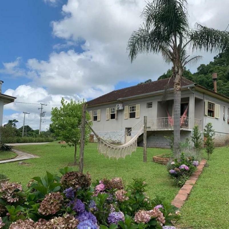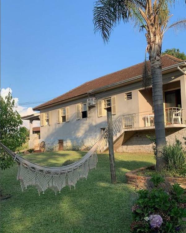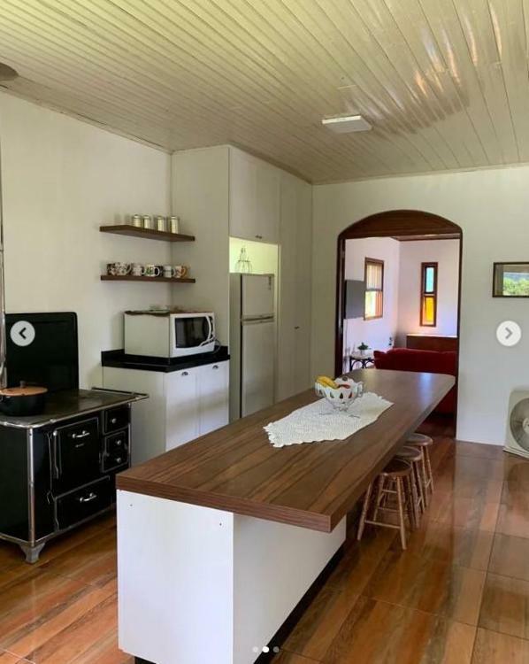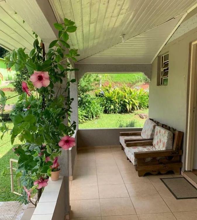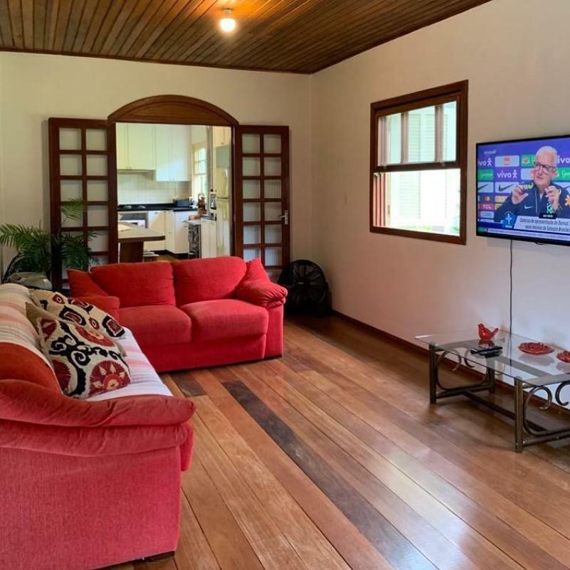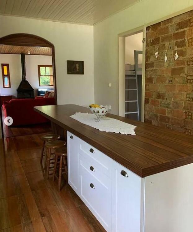 • Ambientes: Sala de jantar e cozinha integradas com fogão à lenha, ampla sala de estar com lareira e sacada, área de serviço e uma charmosa varanda frontal.