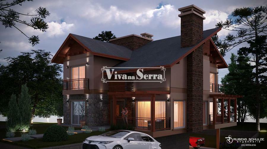 Imobiliária Viva na Serra está vende terreno com projeto aprovado de uma casa no loteamento Vivendas do Arvoredo em Gramado. As características da casa são: